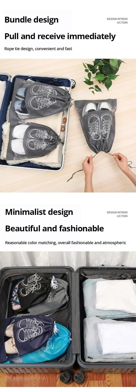 storage bags typically come in sets, such as the 6-piece set you mentioned. These bags are designed to help organize and protect your shoes during travel or when storing them at home. Here are some common features and benefits of 6-piece shoes storage bags:
