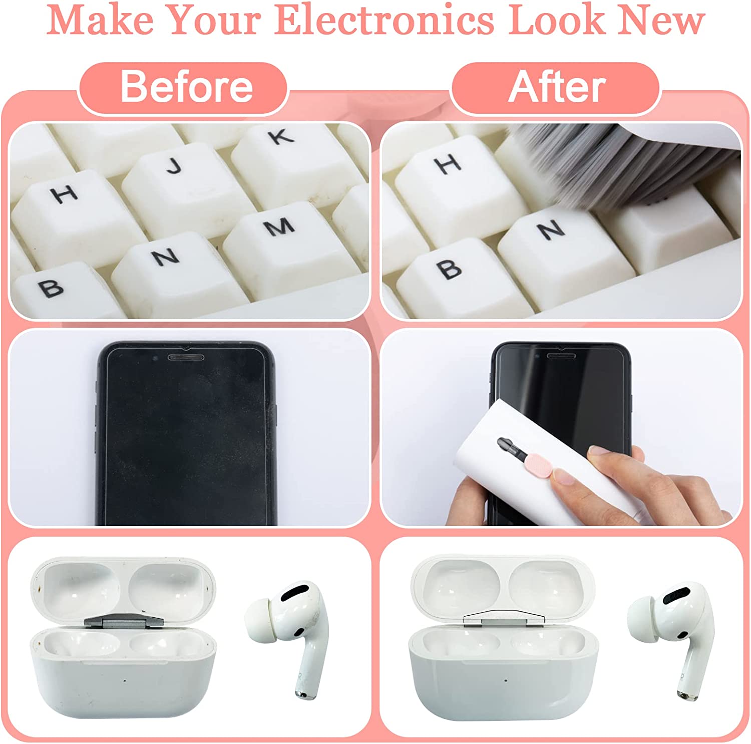 Function: Keyboard puller / retractable cleaning brush / cleaning cloth / Bluetooth headset charging compartment cleaning / small gap cleaning / cleaning spray bottle