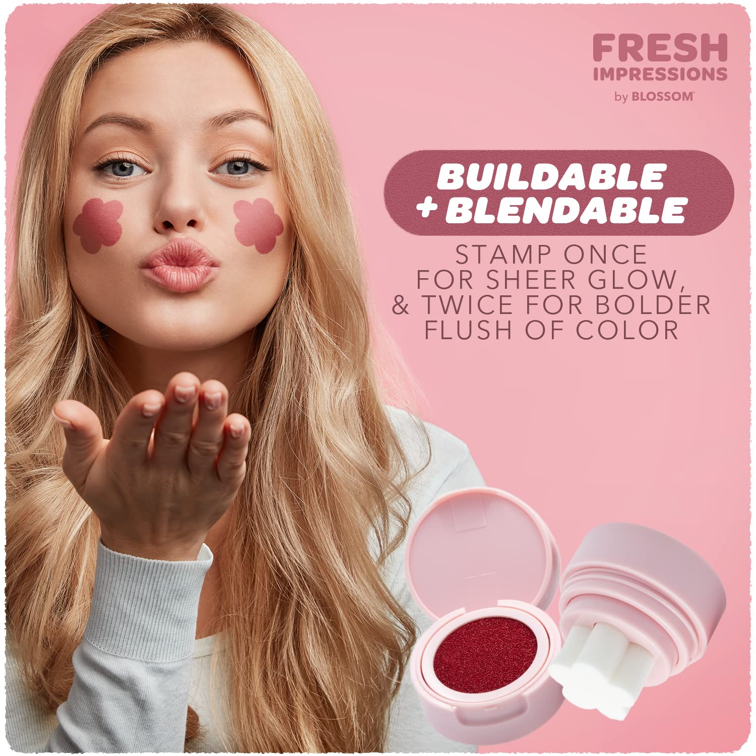 Blossom Fresh Crimson Crush Cushion Cream Blush - Velvet Matte Finish with Flower Stamp Applicator