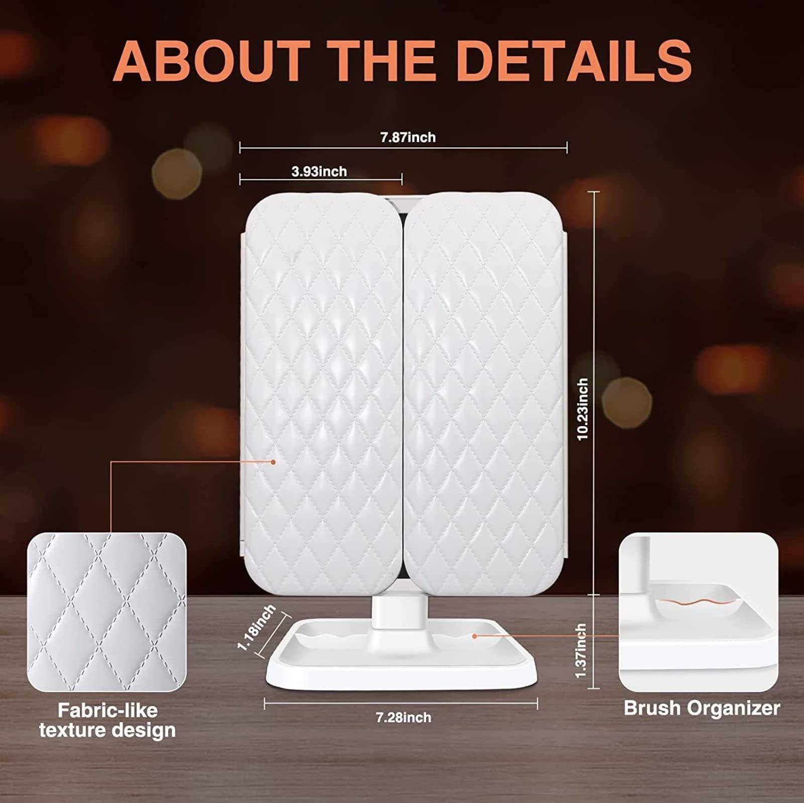 - **LED Lighting:** Built-in LED lights around the mirror provide bright, natural illumination for accurate makeup application in any environment.