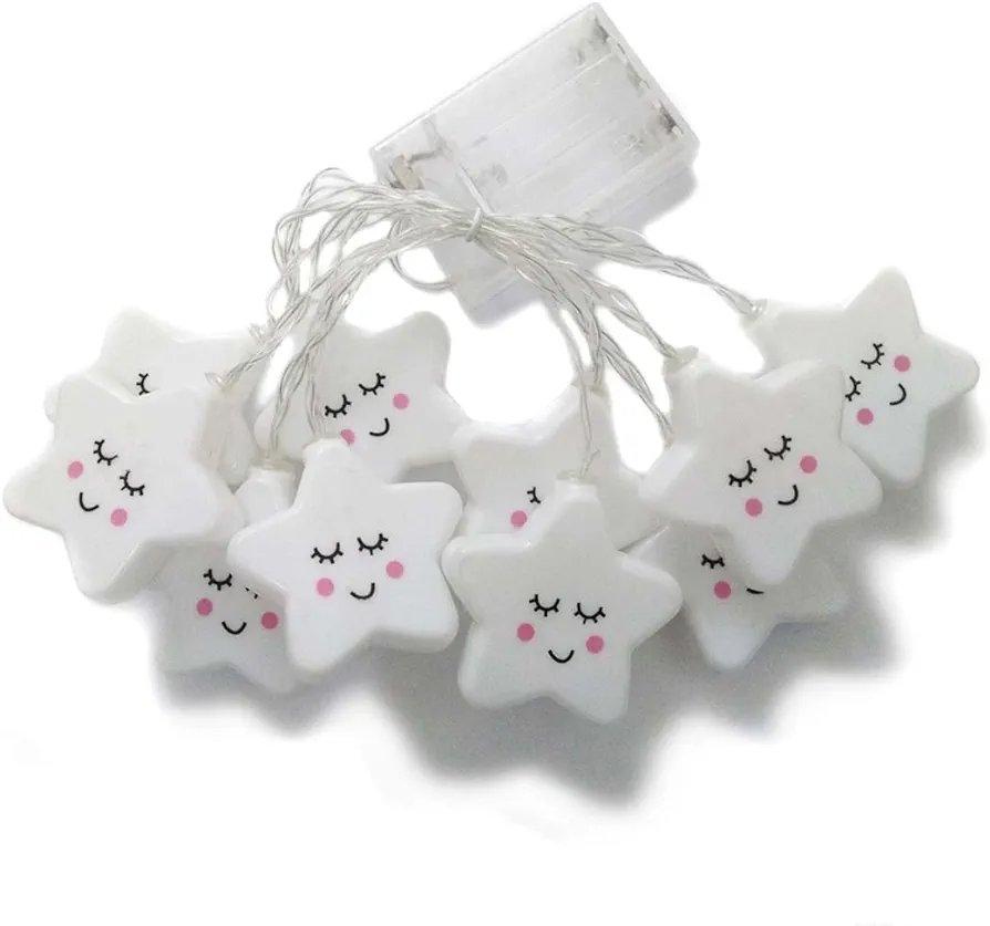 1. **Design**: The lights are shaped like stars, often made from delicate materials such as metal, plastic, or fabric, and feature small LED bulbs inside each star.