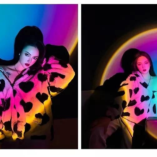 Sunset Lamp Rainbow Projector Night Lights Usb Bedside Table Lamp Valentines Day Gift Lamps Bedroom Bar Coffee LED Atmosphere Light