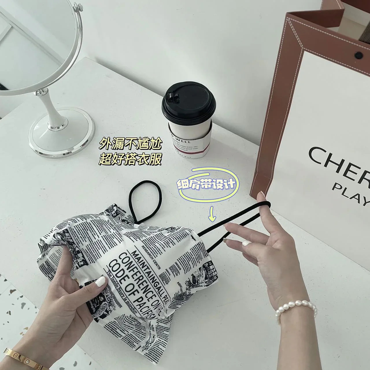 Trendy Newspaper Print Seamless Ice Silk Back Wrap Bra with Padded Comfort