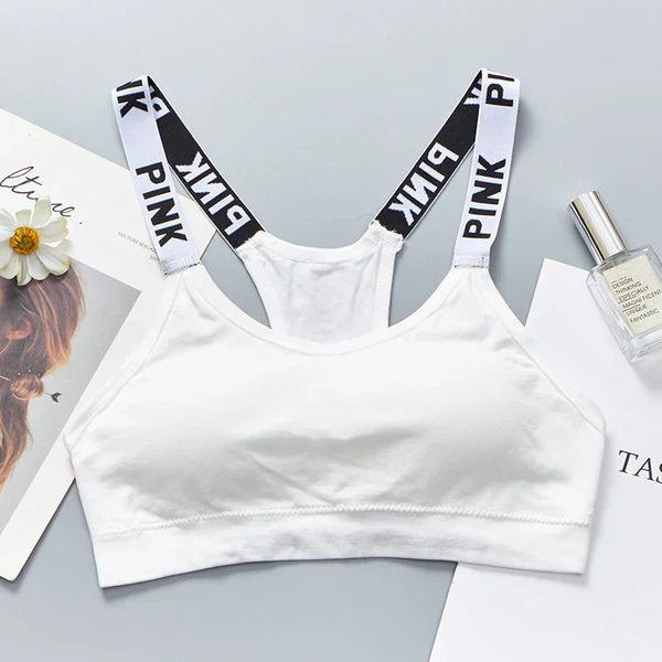 Women Push Up Sports Bra Yoga Running Fitness Tops Black White Letters